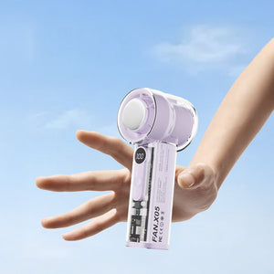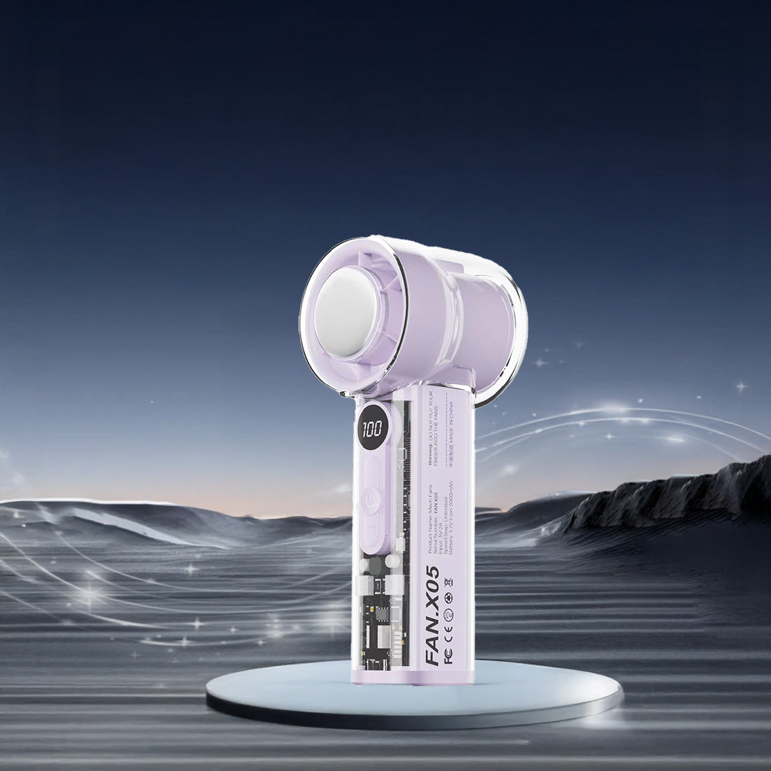 Compact and portable mini fan with elegant purple design