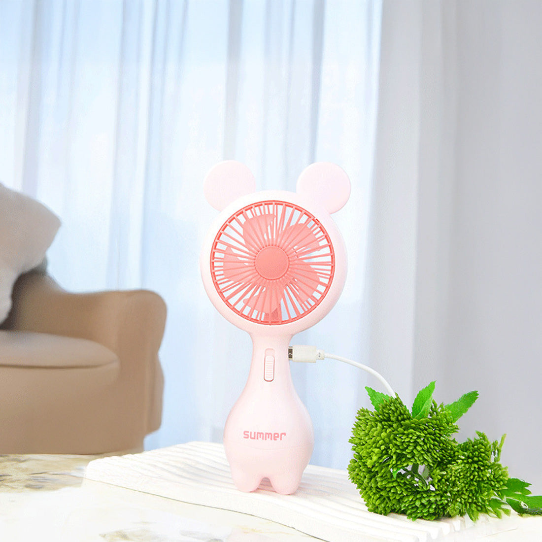 Compact and portable mini fan with stylish pink design